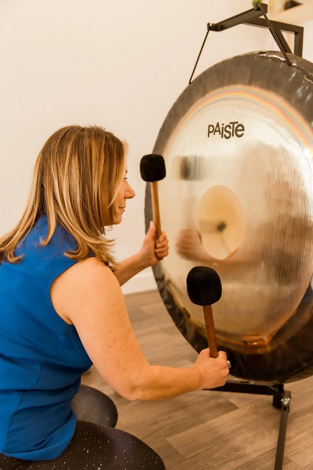 In my sound baths I use a variety of healing instruments :- gongs, Himalayan singing bowls, crystal bowls, drums, hand pan, chimes and percussion.  Each instrument has its own unique way of helping you ‘switch off’ from the chatter of your thoughts, allowing you to float on a wave of sound, deeply resting the body and mind; and releasing unwanted emotions and traumas.